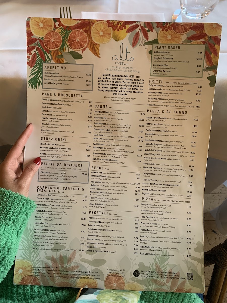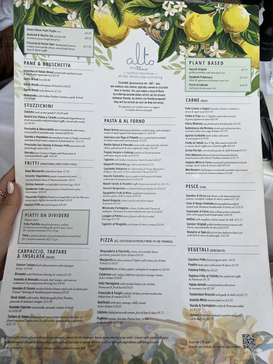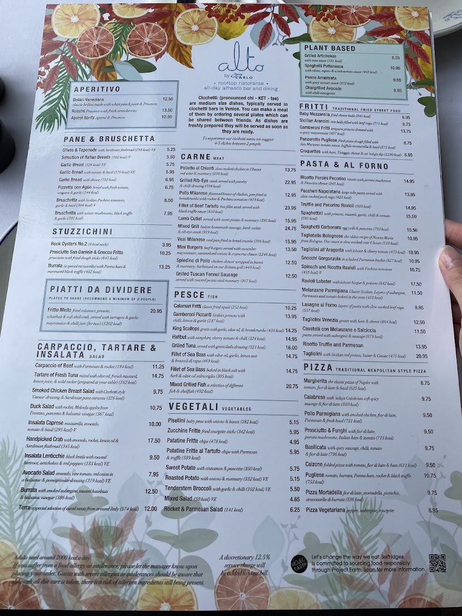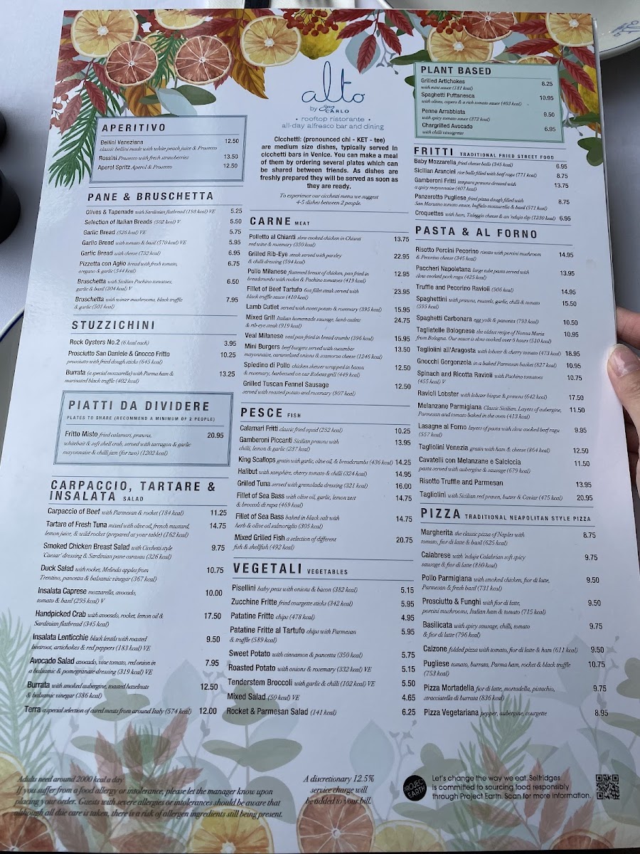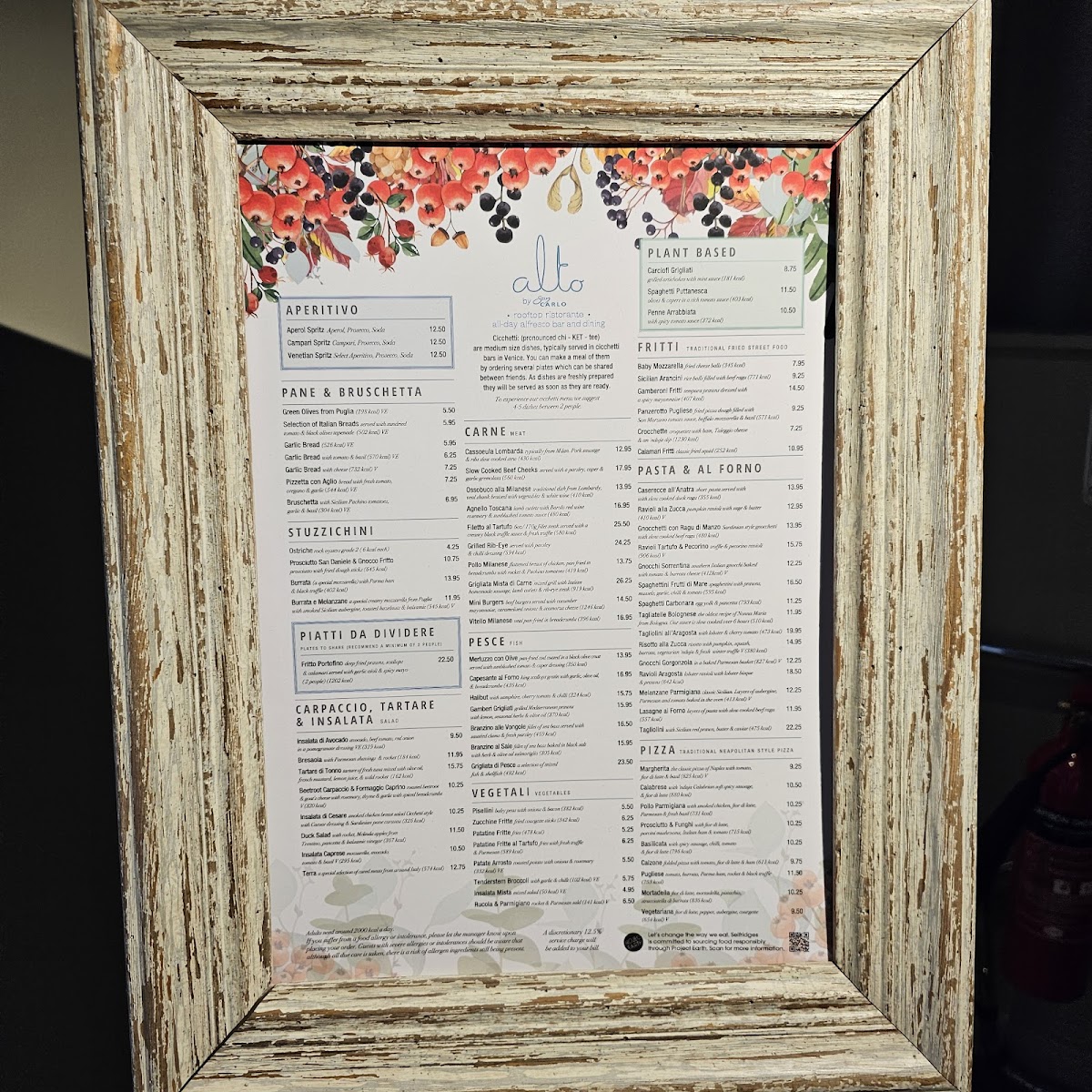 In summary, the Alto By San Carlo - London Menu is a refined culinary journey through Italy, served in one of London’s most exclusive rooftop settings. It’s a must-visit for those seeking elevated Italian dining with panoramic views.